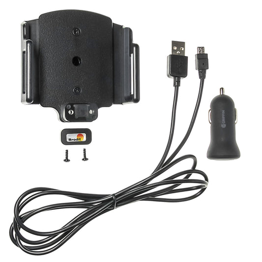 Állítható tartó. Alkalmas bőrrel ellátott és bőr nélküli eszközökhöz a következő méretekkel: Szélesség: 62-77 mm, Vastagság: 6-10 mm. USB Type C töltőkábellel.