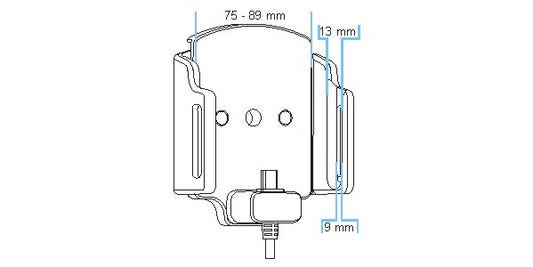 Állítható tartó Micro-USB csatlakozóval. 75–89 mm széles, 9–13 mm vastag készülékhez. 2,1A töltés. 12/24V. Csuklóval.