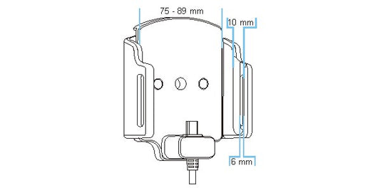 Állítható tartó Micro-USB csatlakozóval. 75–89 mm széles, 6–10 mm vastag készülékhez. 2,1A töltés. 12/24V. Csuklóval.