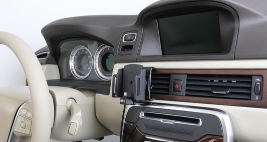 Állítható tartó Apple Lightning csatlakozóval, USB-kábellel, szivargyújtóval. Csuklóval, vezetékkivezetéssel. Tokkal vagy tok nélkül, 140–195 mm magas, max 25 mm vastag készülékhez.