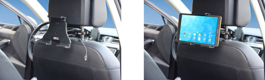 Állítható tartó. USB Type-C csatlakozóval. USB-kábellel és szivargyújtóval. Csuklóval, vezetékkivezetéssel. Tokkal vagy tok nélkül, 180–230 mm magas, max 25 mm vastag készülékhez.