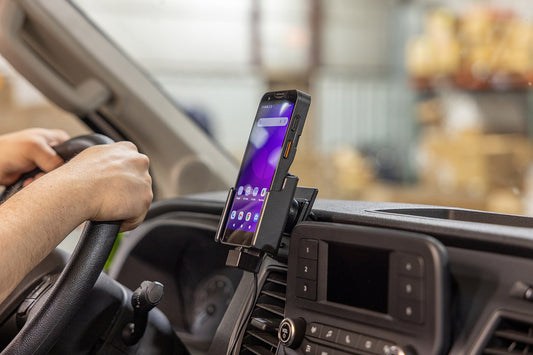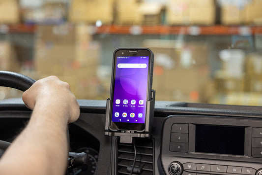 With USB-C cable. 2 USB ports: Type-A and Type-C: QC 3.0A + 2.4A. With tilt swivel. 2.7A charging. 12/24V. For device in Protective Rubber Boot (PRS3800X01507) with/without handstrap.