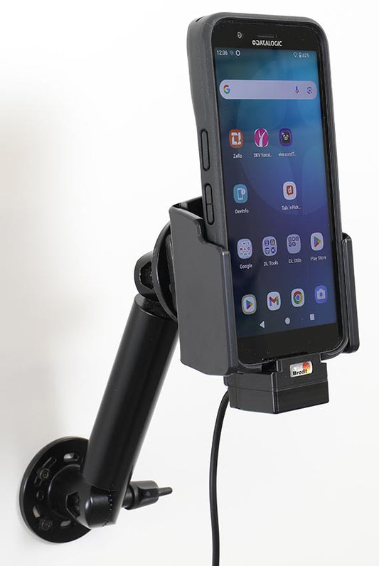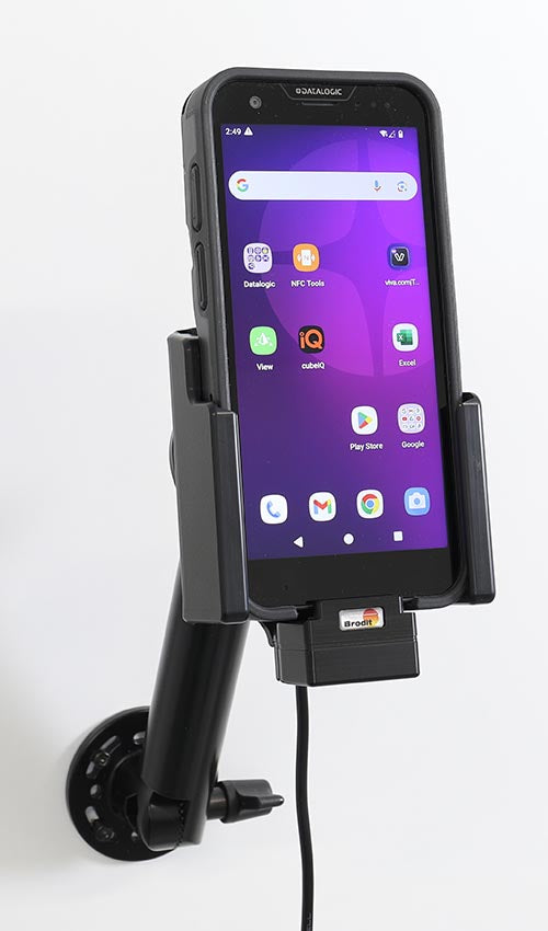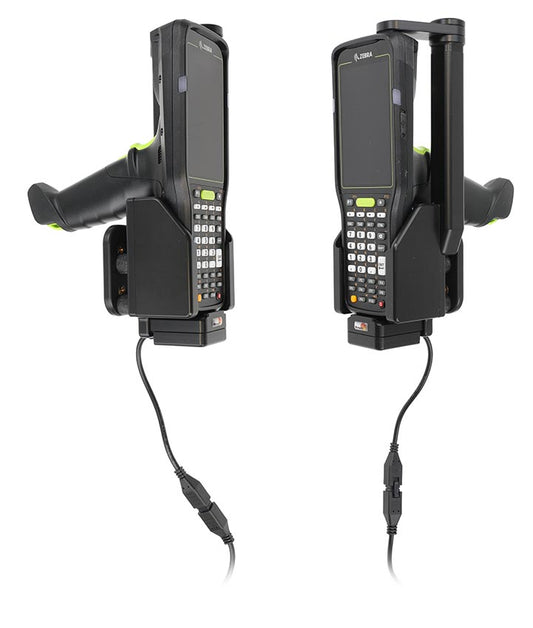 Csuklóval. 2,5A töltés. 12/24V. Easy-switching rendszerrel. Töltés pogo tüskén keresztül. Datalogic eredeti gumiborítással használt készülékhez.
