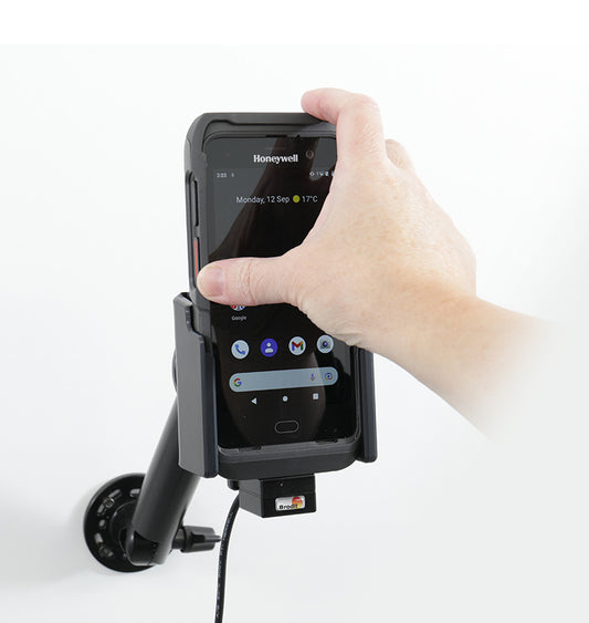 2 USB-A porttal: QC 3.0A + 2.4A. Csuklóval. 12/24 V. 5/7,5/10/15 W vezeték nélküli töltés. Datalogic eredeti gumiborításos (94ACC0193) készülékhez.