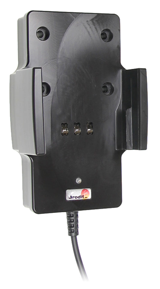 Vékony kialakítású tartó beépített töltővel. Li-Ion vagy Li-Poly akkumulátorhoz használható.