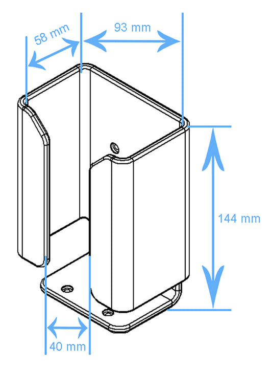 Univerzális szkenner tartó, X-Large méret, targoncára. Pisztolymarkolatos készülékekhez. A készüléket lefelé fordítva kell behelyezni. Belső méret: 93x144x58 mm (szél x mag x mély).
