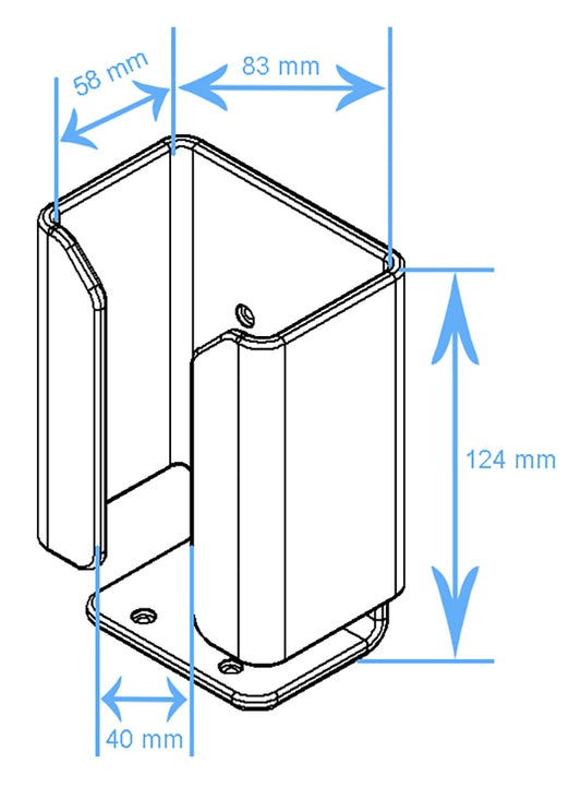 Univerzális szkenner tartó. Pisztolymarkolatos készülékekhez. A készüléket lefelé fordítva kell behelyezni. Nagy méret. Belső méret: 83x124x58 mm.