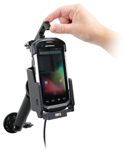 Aktív tartó szivargyújtóval, csuklóval. 3A töltés, 12/24V. Easy-switch rendszer. Töltés pogo tűkkel. Kézpántos készülékhez. 2 kulcs mellékelve.