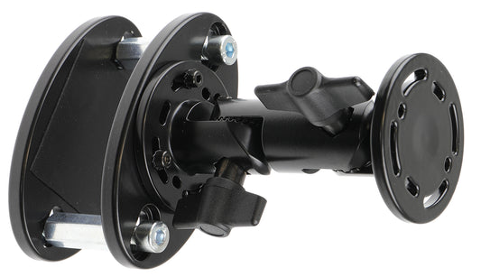 Targonca konzol nagy teherbírású 4"-os Pedestal mount-tal. Használható 5–130 mm vastagságig, max. 87 mm szélességig. Hossz: 114 mm + bilincs. Csavarok, anyák, alátétek és imbuszkulcsok mellékelve. AMPS furatokkal.