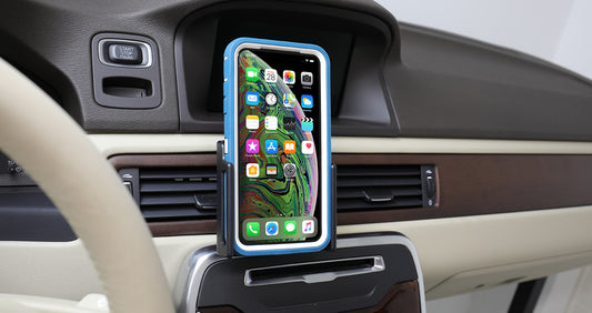 Állítható tartó. Használható tokkal vagy tok nélkül. Méret: 49–63 mm széles, 12–16 mm vastag.