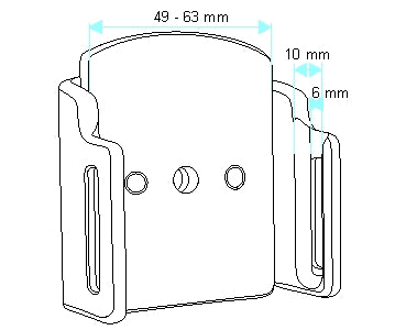 Állítható tartó tokkal rendelkező készülékhez. 75–89 mm széles, 6–10 mm vastag.