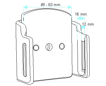 Állítható tartó tokkal rendelkező készülékhez. 75–89 mm széles, 9–13 mm vastag.