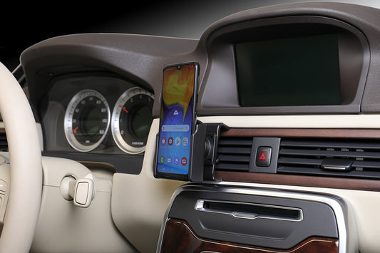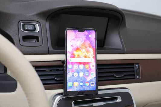 Állítható tartó. Használható tokkal vagy tok nélkül. Méret: 62–77 mm széles, 6–10 mm vastag.