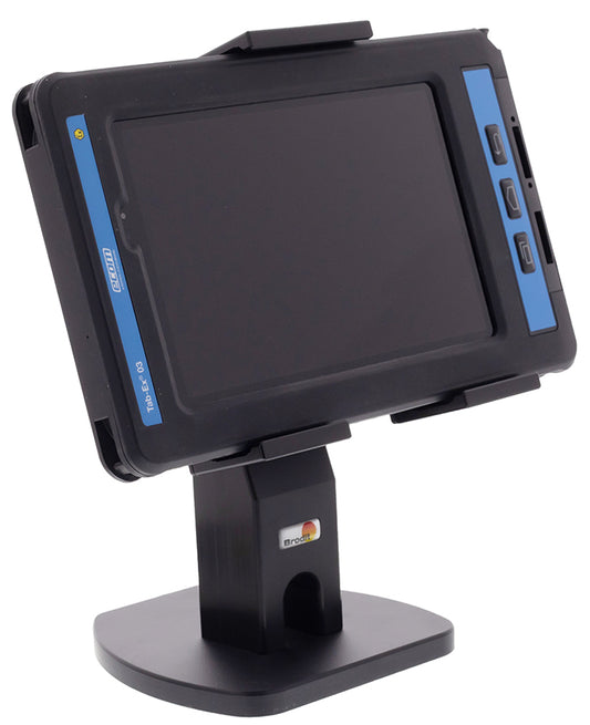 Forgatható Pedestal mount állítható táblagép tartóval. 345°-ban forgatható, 140–195 mm magas készülékhez.