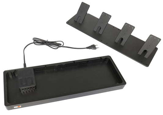 Asztali tartó négy foglalattal. USB-csatlakozós tartókkal használható. 220 V-os kábel mellékelve.