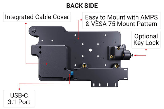 MultiMoveClip csúszó tápcsatlakozóval. Alkalmas mind standard, mind Eliminator akkumulátorral rendelkező eszközökhöz. Kialakítva legfeljebb 127 mm átmérőjű álló hengerekhez, 25 mm magátmérővel. AMPS és VESA 75 furatokkal ellátva.