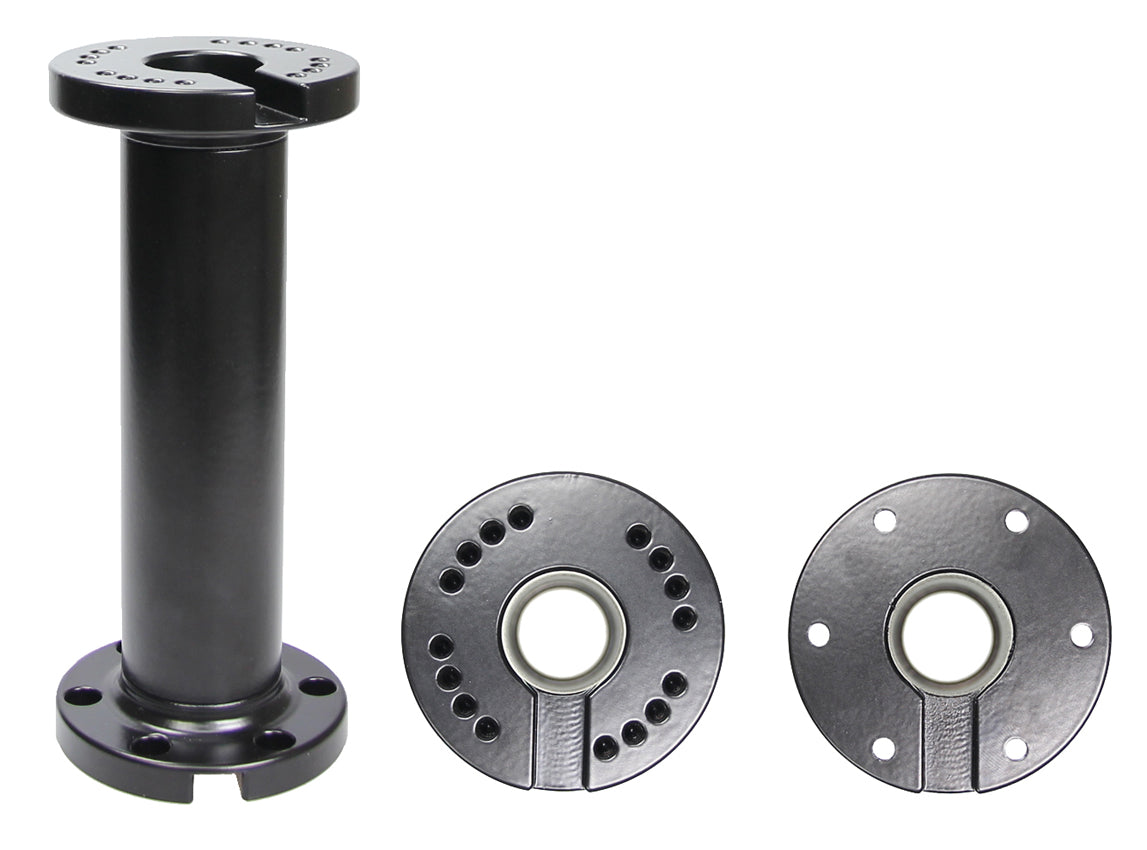 Pedestal mount 6", kábelátvezetéshez. Teljes hossz: 150 mm. Átmérő: 64 mm, felül 4 db AMPS-lyuk, alul 6 lyuk. Fekete.