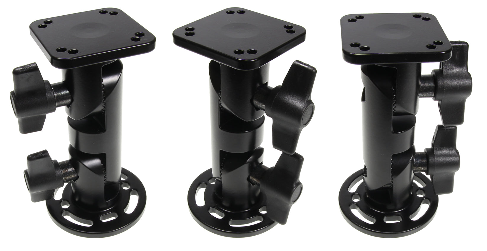 Állítsa össze a saját elképzelését az alsó/felső részek és a hosszabbító részek összecsavarozásával. A tartót szükség szerint be lehet állítani 11,25°-os lépésekben, maximum 180°-ig (16 különböző pozíció). A kerek alap átmérője 64 mm és több furattal rendelkezik a sugárirányú beállítás érdekében. A négyszögletű felső rész 50x50 mm és kettős AMPS furatokkal rendelkezik. Ez a Pedestal Mount szárnyas anyával rendelkezik , hogy a beállítás könnyű és gyors legyen.