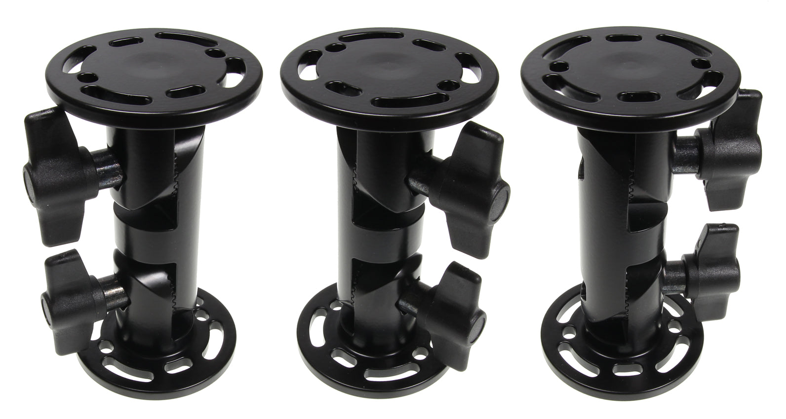 Állítsa össze a saját elképzelését az alsó/felső részek és a hosszabbító részek összecsavarozásával. A tartót szükség szerint be lehet állítani 11,25°-os lépésekben, maximum 180°-ig (16 különböző pozíció). A kerek alap átmérője 64 mm és több furattal rendelkezik a sugárirányú beállítás érdekében. Ez a Pedestal Mount szárnyas anyával rendelkezik , hogy a beállítás könnyű és gyors legyen.