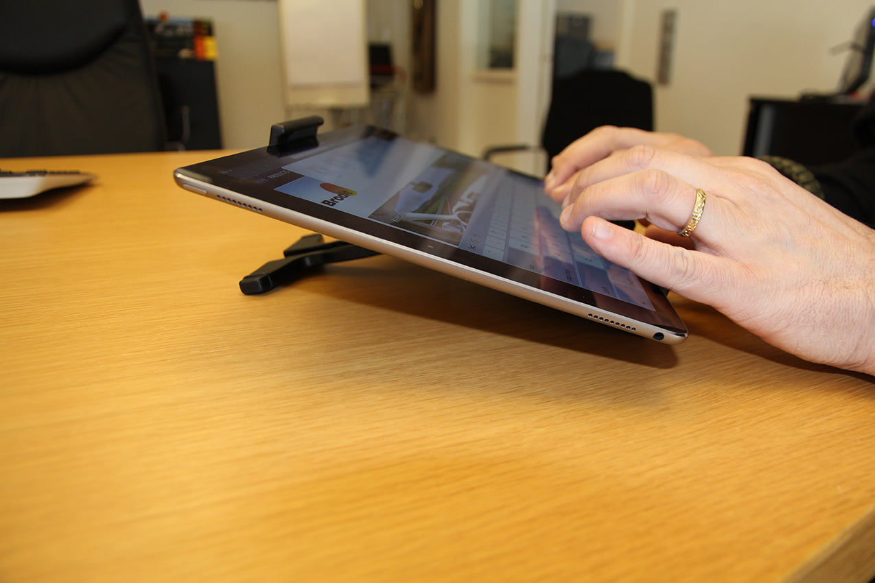 Mind otthon, az autóban vagy az irodában kényelmes a használata. Mivel az állványt könnyebb megfogni, mint az eszközt, a leejtés veszélye csökkenthető. Az állványt bármilyen szögbe beállíthatja. Bármilyen lapos felületre elhelyezhető a mellékelt szerelő adapter segítségével (cikkszám: 215461).