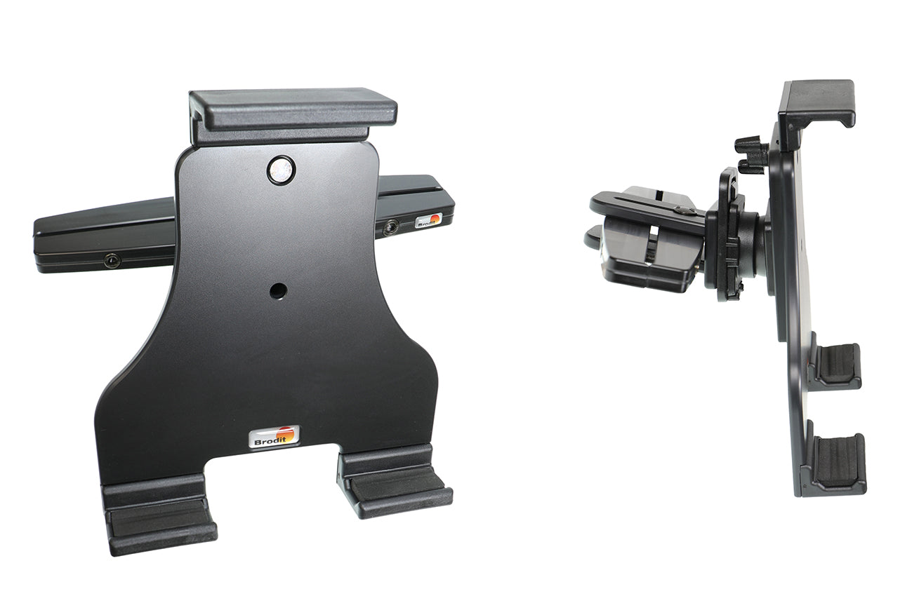 Fejtámlatartó állítható tartóval. MoveClip-pel. Tokkal vagy tok nélkül használt készülékhez, magasság: 180–230 mm, max. vastagság: 25 mm. Használható olyan fejtámlához, ahol a rudak közti méret: min. 95 mm, max. 211 mm.