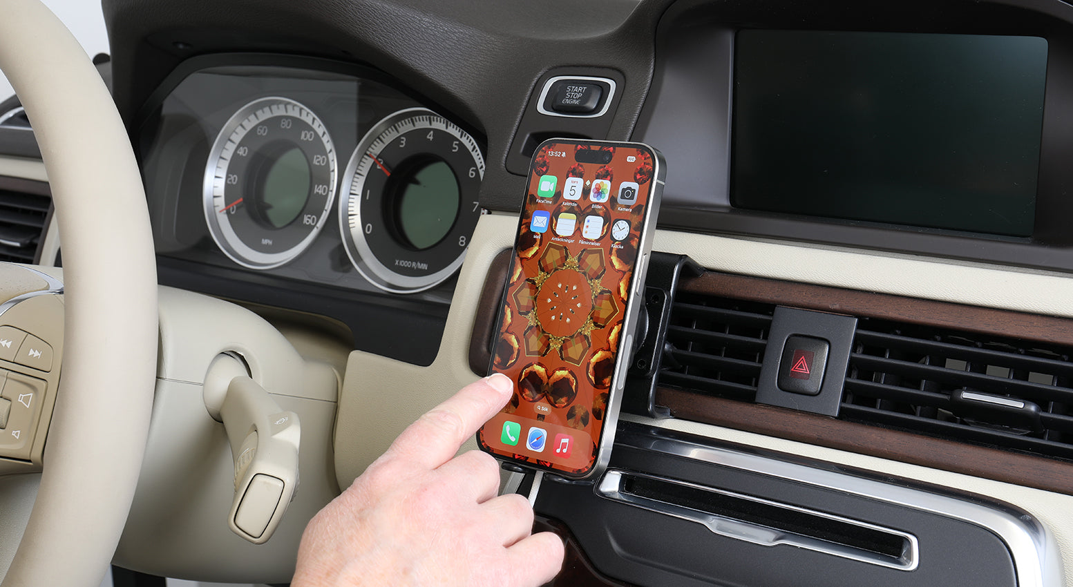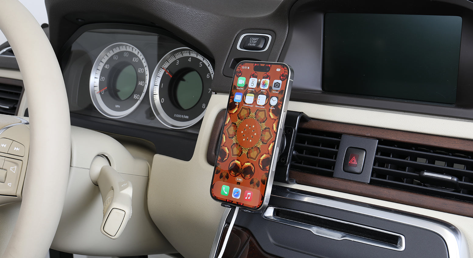 Ez a tartót normál vezetési körülmények között történő használatra tervezték. Felhívjuk figyelmét, hogy bizonyos helyzetekben, például rögös utakon történő vezetésnél vagy a jármű hirtelen fékezésénél/manőverezésénél előfordulhat, hogy a töltő kiesik a tartóból. Az Apple MagSafe töltő tartó használata a felhasználó saját felelőssége. Ha a töltő kiesik a tartóból, akkor a Brodit AB nem vállal felelősséget az esetlegesen okozott károkért. |