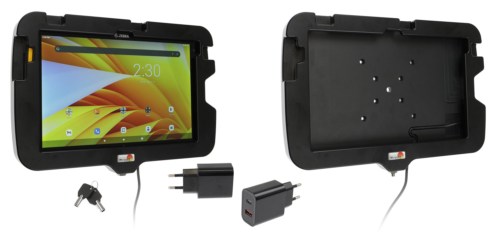 Fali tartó tápkábellel és európai fali adapterrel (QC + PD töltő). Rugged Boot / Exoskeleton nélküli készülékekhez. AMPS és VESA 75 lyukakkal.
