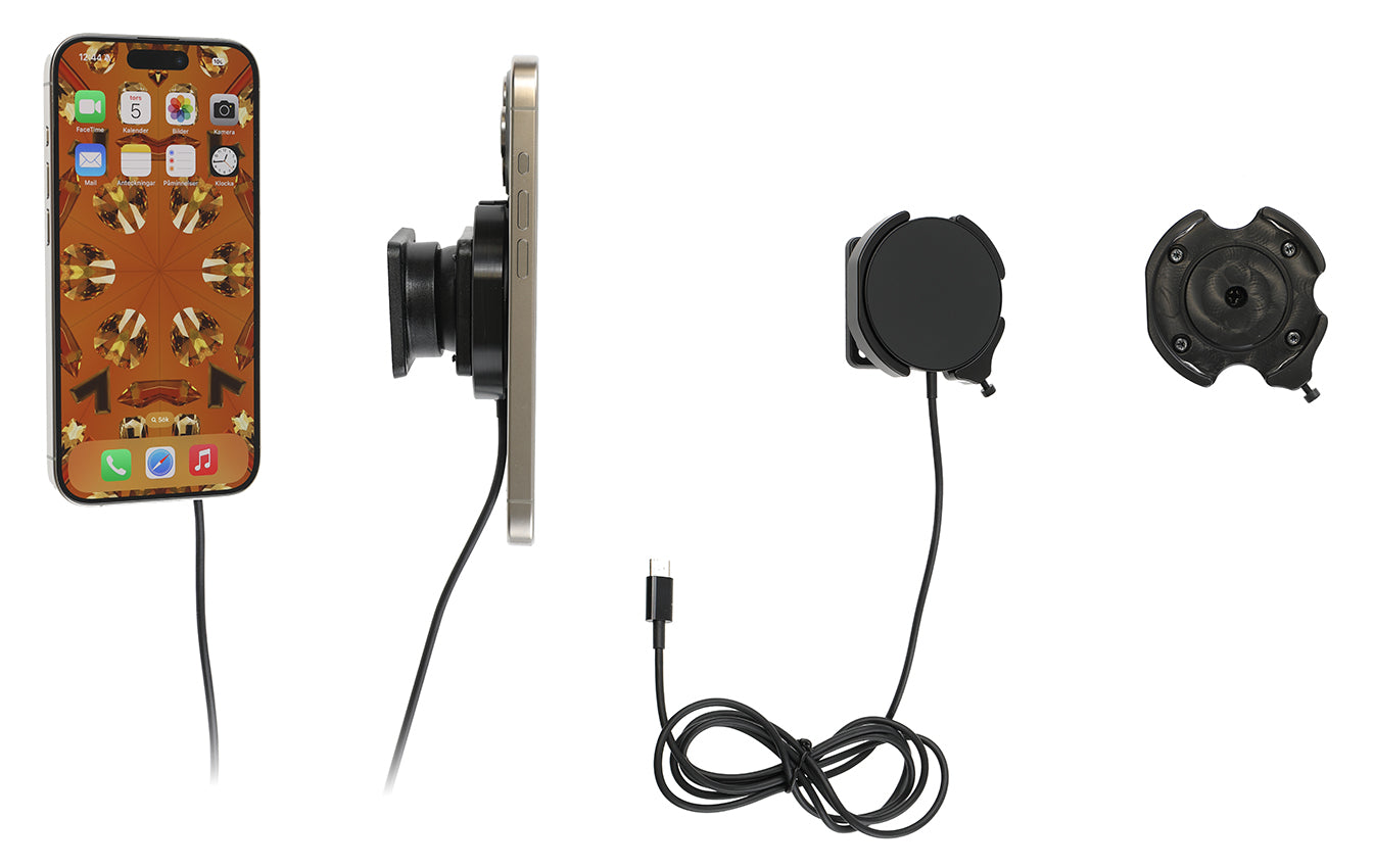 A mágneses töltő tartására szolgáló tartót hétköznapi vezetési körülmények között történő használatra tervezték. Felhívjuk figyelmét, hogy bizonyos helyzetekben, mint például rázós úton való vezetés vagy a jármű hirtelen fékezése/manőverezése esetén előfordulhat, hogy a mágneses töltőeszköz elmozdul az azt tartó tartóról. A mágneses töltőt tartó használata a felhasználó saját belátása és kockázata szerint történik. A Brodit AB nem vállal felelősséget a tartóról való leválás okozta károkért. |