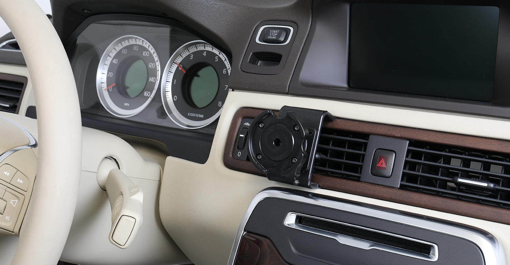 A tartó csuklóval van felszerelve, így állíthatósága miatt elkerülhetjük a fényvisszaverődést. Könnyen válthat a függőleges és vízszintes pozíciók között a tartó elfordításával. 17°-ban billenthető és 360°-ban forgatható. A szerelőlap 42x50 mm és 4 mm-es előfúrt AMPS furatokkal rendelkezik. Kiváló minőségű fekete ABS és Acetal műanyagból készül Svédországban. ProClipre szereljük fel.