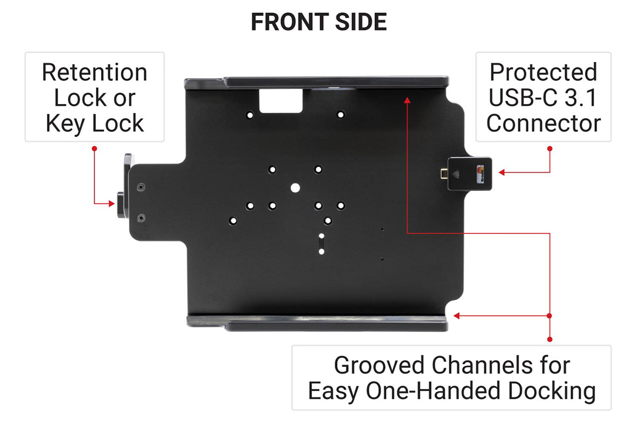Ez a bölcső tökéletes választás, ha azt szeretné, hogy az eszköze biztonságosan rögzítve legyen, de könnyen hozzáférhető maradjon. A kulcsos zár megakadályozza, hogy a táblagépet illetéktelen személyek eltávolítsák; az eszköz eltávolításához kulcsra lesz szüksége (2 kulcsot tartalmaz).