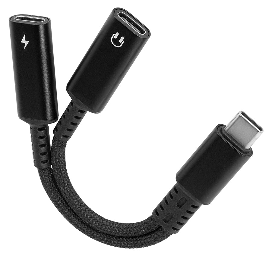 Ez az USB-C elosztó lehetővé teszi, hogy feltöltse készülékét és használja az USB 2.0 adat- vagy audiofunkciót. Két női USB-C porttal rendelkezik: az egyik a 60 W-os Power Delivery (PD) töltéshez, a másik pedig az USB 2.0 adat- vagy audiofunkcióhoz beépített DAC-kal (digitális-analóg átalakító).