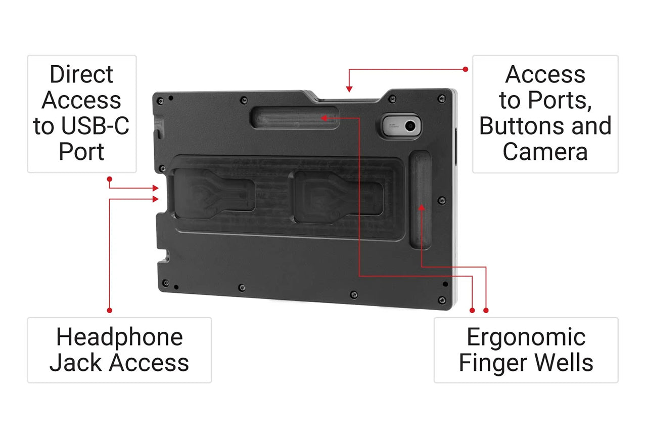 Lengéscsillapító rugókkal felszerelve biztosítja a végső eszközvédelmet. A Hard Case-t 1,8 méterről betonra történő leejtéstesztelésnek vetették alá. A táblagép és a dokkoló közötti közvetlen USB-C hozzáférés zökkenőmentes töltést tesz lehetővé.