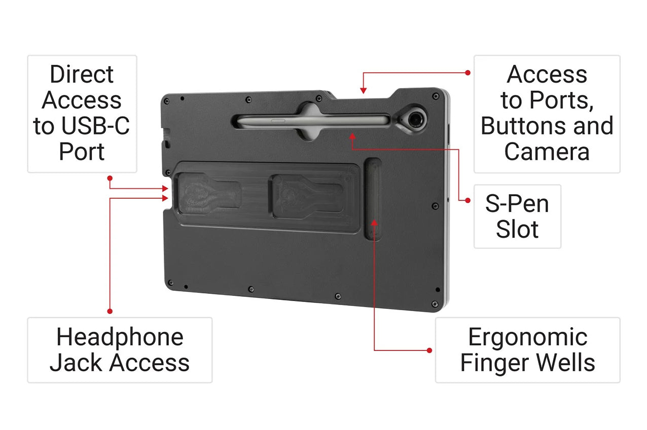 Lengéscsillapító rugókkal felszerelve biztosítja a végső eszközvédelmet. A Hard Case-t 1,8 méterről betonra történő leejtéstesztelésnek vetették alá. A táblagép és a dokkoló közötti közvetlen USB-C hozzáférés egyidejű gyors töltést és nagy sebességű adatátvitelt tesz lehetővé.