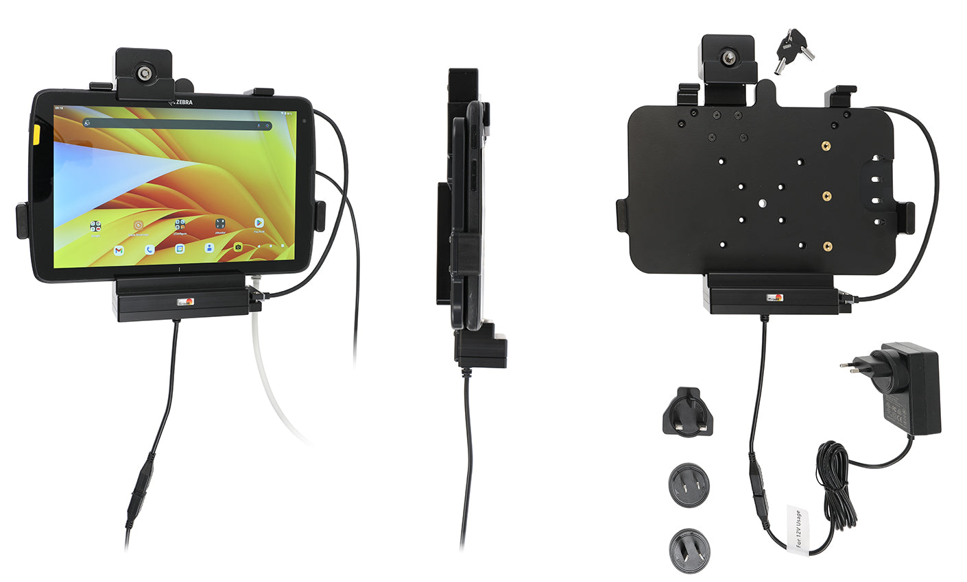 Aktív tartó tápkábellel és fali adapterrel. 2 kulccsal. USB Host Type-A csatlakozóval. Easy-switching rendszerrel. Töltés pogo tüskén keresztül. AMPS, VESA 75 furatokkal. Rugged Boot / Exoskeleton nélküli készülékhez.