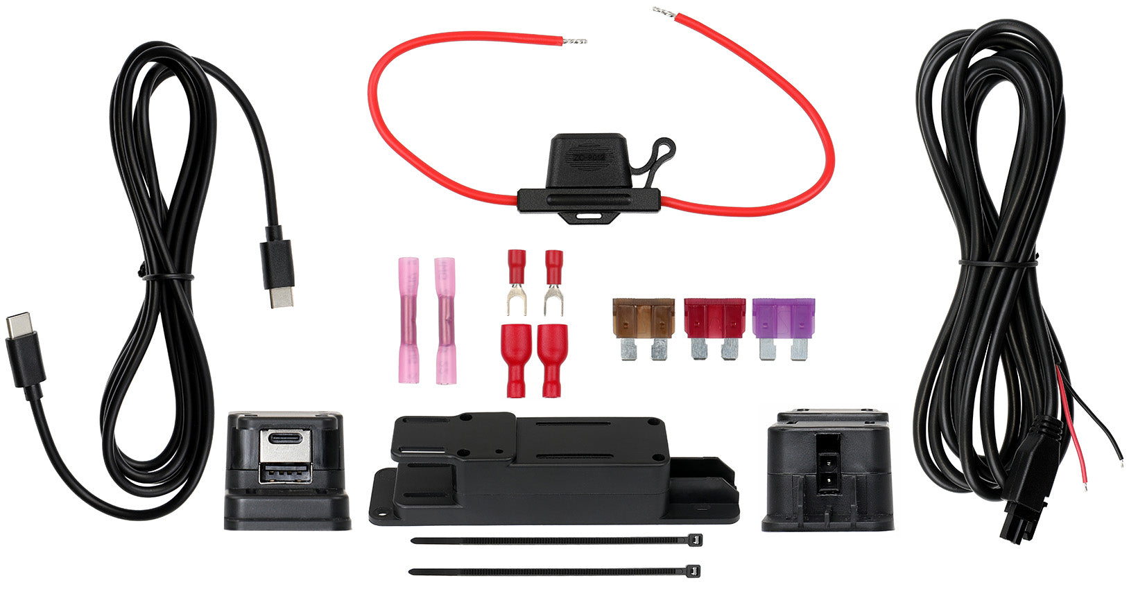 Töltődoboz 83W. Kettős USB-port: Type-A és Type-C, QC 3.0A + 2.4A. 2 tűs Molex csatlakozó. Fix bekötéshez Molex 2 tűs kábel és 1500 mm USB Type-C kábel mellékelve.