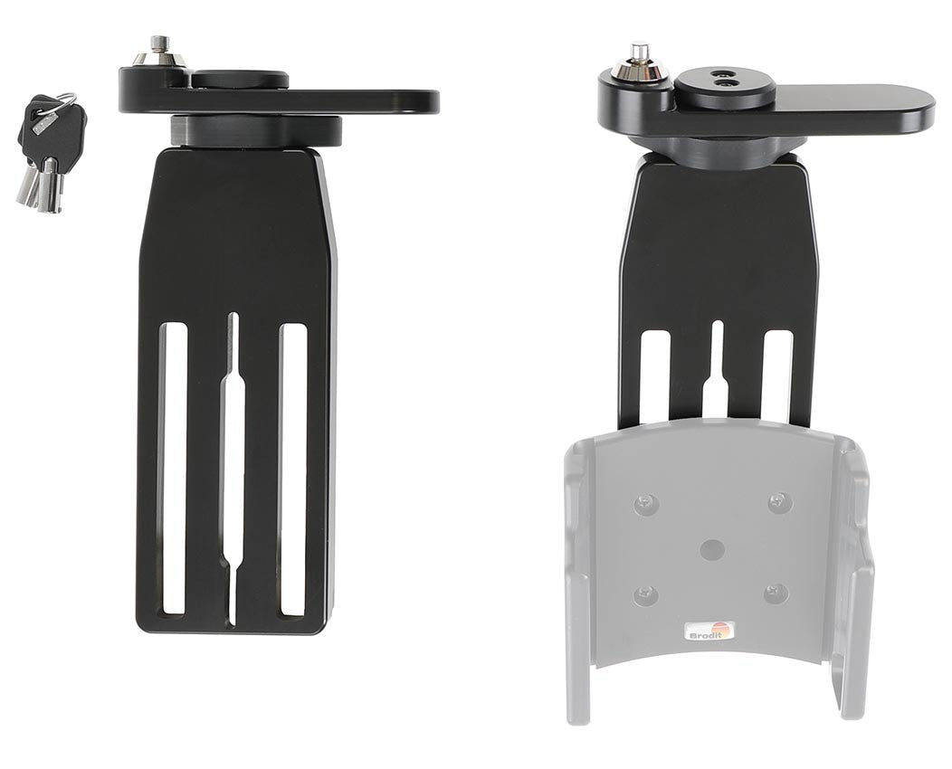 Forgatható felső támasz zárral és 2 kulccsal. Illeszkedik a Brodit tartókhoz, amelyek billenő forgólemeze 42x50 mm méretű. Készülékekhez, amelyek maximális magassága körülbelül 164 mm (a készülék kialakításától függően).