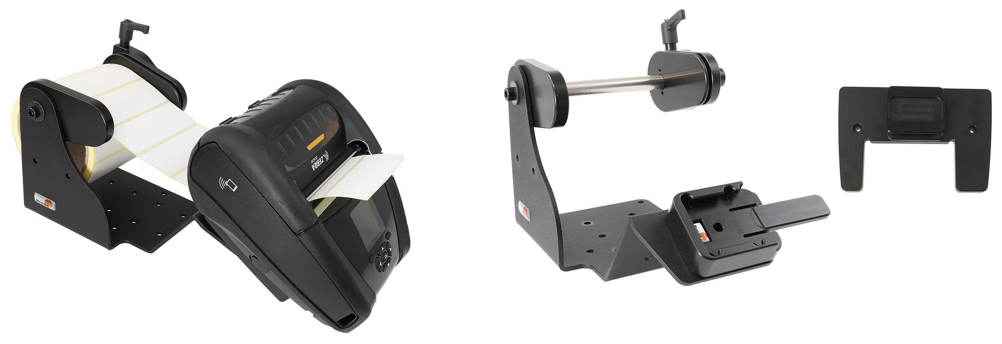 Nyomtatótartó címketekercs funkcióval. Max. 127 mm átmérőjű, 25 mm magátmérőjű álló hengerekhez. MultiMoveClip csatlakozóval.