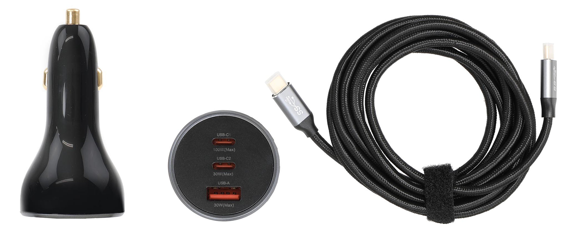 2 USB-C and 1 USB-A ports (female) 12/24 Volt.