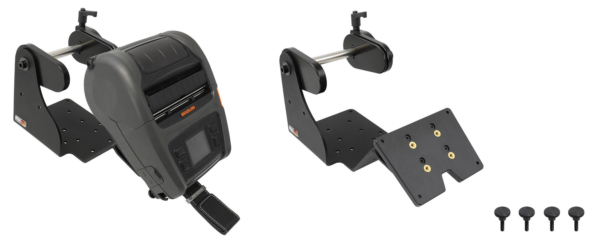 Ez a nyomtatótartó könnyű és biztonságos módot kínál nyomtatója rögzítésére, és tartalmaz egy külső görgőt nagy tekercsű címkék vagy médiák számára. Ha egy nyomtatótartó lemezzel kombinálja, ez a platform egy rugalmas tartást biztosít, amely a folyamatos adagolású görgőket használja nyomtatási platformokhoz. AMPS, VESA 75 furatokkal. Kiváló minőségű ABS/Acetal műanyagból és fémből készült. Szín: fekete. Svédországban készült.