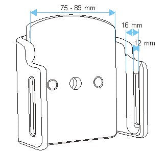 Állítható tartó. Használható tokkal vagy tok nélkül. Méret: 75–89 mm széles, 12–16 mm vastag.