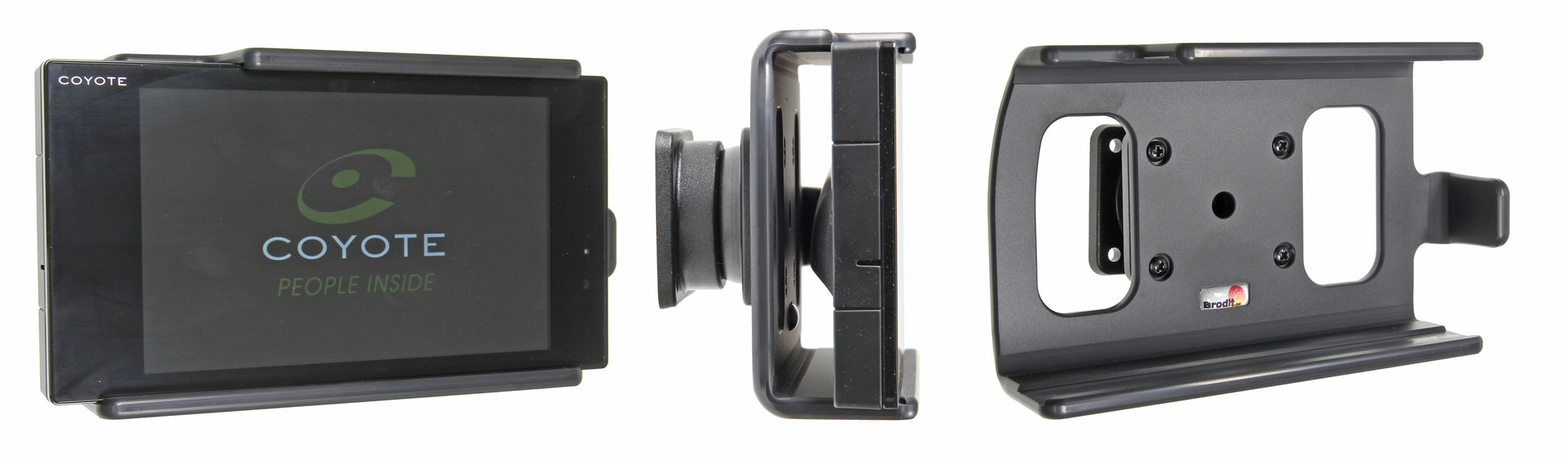 Tartsa Coyote Nav készülékét a passzív tartóban, hogy könnyen elérhető legyen. A tartó csuklóval van felszerelve, így állíthatósága miatt elkerülhetjük a fényvisszaverődést. Könnyű betenni a GPS-t a tartóba illetve kivenni. Csatlakoztathat például egy töltő kábelt a GPS-hez, amikor a tartóban van.