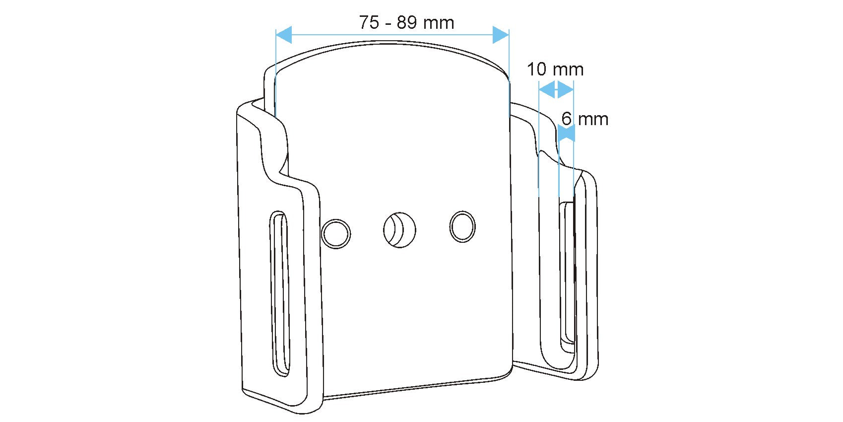 Állítható tartó tokkal rendelkező készülékhez. 75–89 mm széles, 6–10 mm vastag.