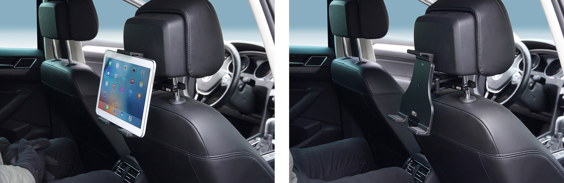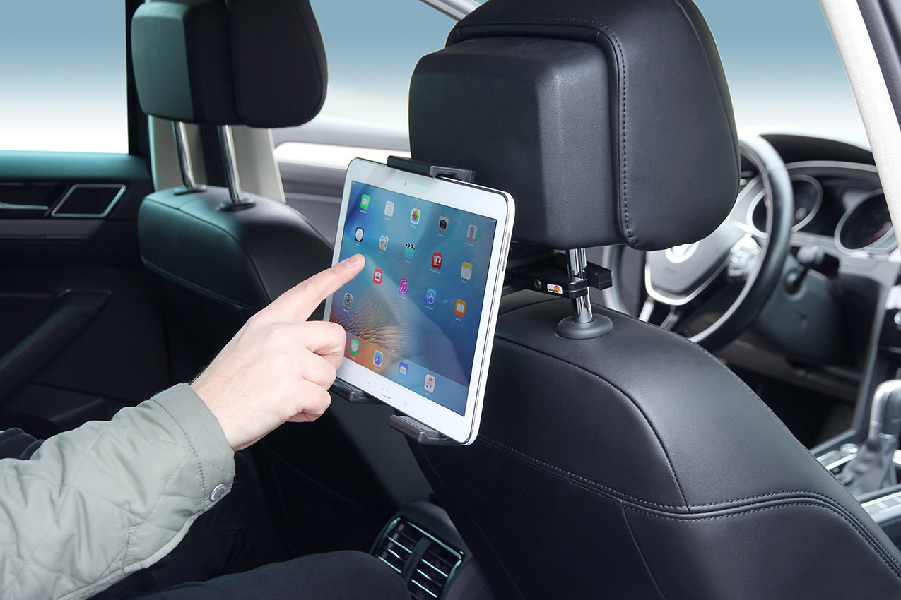 A Brodit határozottan nem ajánlja ezt a típusú rögzítési formát! Az autó műszerfalára rögzített tablet az ügyfél saját döntése, az ő felelőssége. A Brodit a fejtámlára való rögzítést javasolja, a fejtámlára rögzíthető állvány segítségével.