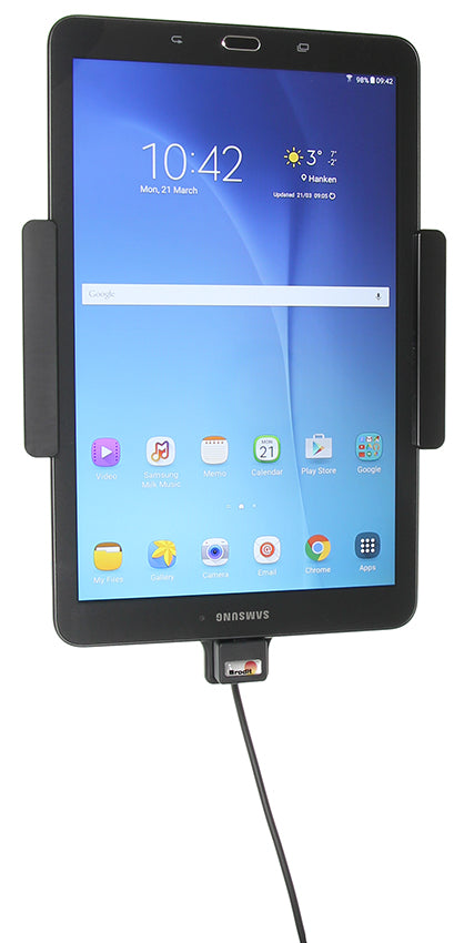 A tartó csuklóval van felszerelve, így állíthatósága miatt elkerülhetjük a fényvisszaverődést. Könnyen válthat a függőleges és vízszintes pozíciók között a tartó elfordításával. Könnyű betenni a Galaxy Tab E 9.6 készüléket a tartóba illetve kivenni és magunkkal vinni, amikor elhagyjuk a járművet.