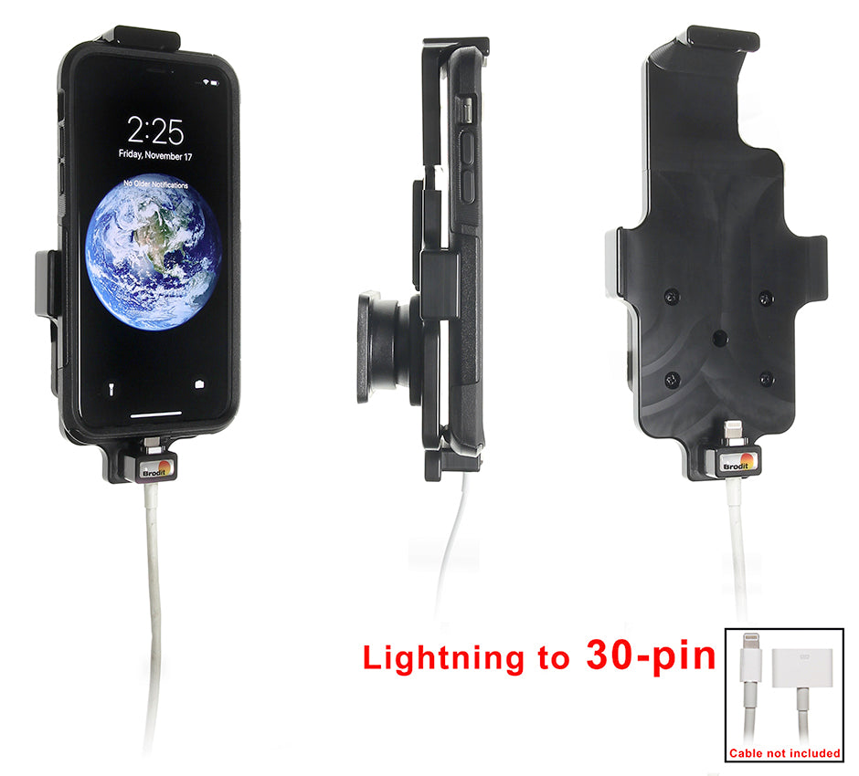 Használható Apple eredeti Lightning–30 tűs adapterkábellel. Csuklóval. Tokkal használt készülékhez, méretek: magasság 144–150 mm, szélesség 78 mm, vastagság 2–11 mm.