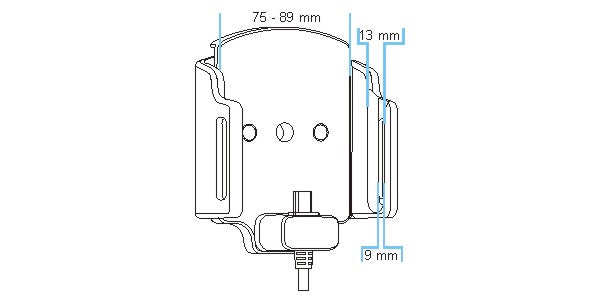 Az állítható tartó mind tok nélküli és tokkal ellátott eszközökkel is illeszkedik a következő méreteken belül: Szélesség: 75-89 mm, vastagság: 9-13 mm. Az állítható tartók különböző méretekben találhatóak meg. Mérje meg eszközét és hasonlítsa össze a tartó leírásával, hogy a megfelelő terméket válassza (ha az eszköz tokkal rendelkezik: a tokkal együtt mérje le az eszközt).