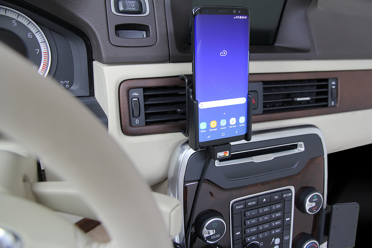 A tartó csuklóval van felszerelve, így állíthatósága miatt elkerülhetjük a fényvisszaverődést. Könnyen válthat a függőleges és vízszintes pozíciók között a tartó elfordításával. 20°-ban billenthető és 360°-ban forgatható. A szerelőlap 42x50 mm és előfúrt AMPS furatokkal + 2x3,5 mm központi furatokkal rendelkezik. Kiváló minőségű fekete ABS és Acetal műanyagból készül Svédországban. ProClipre szereljük fel.