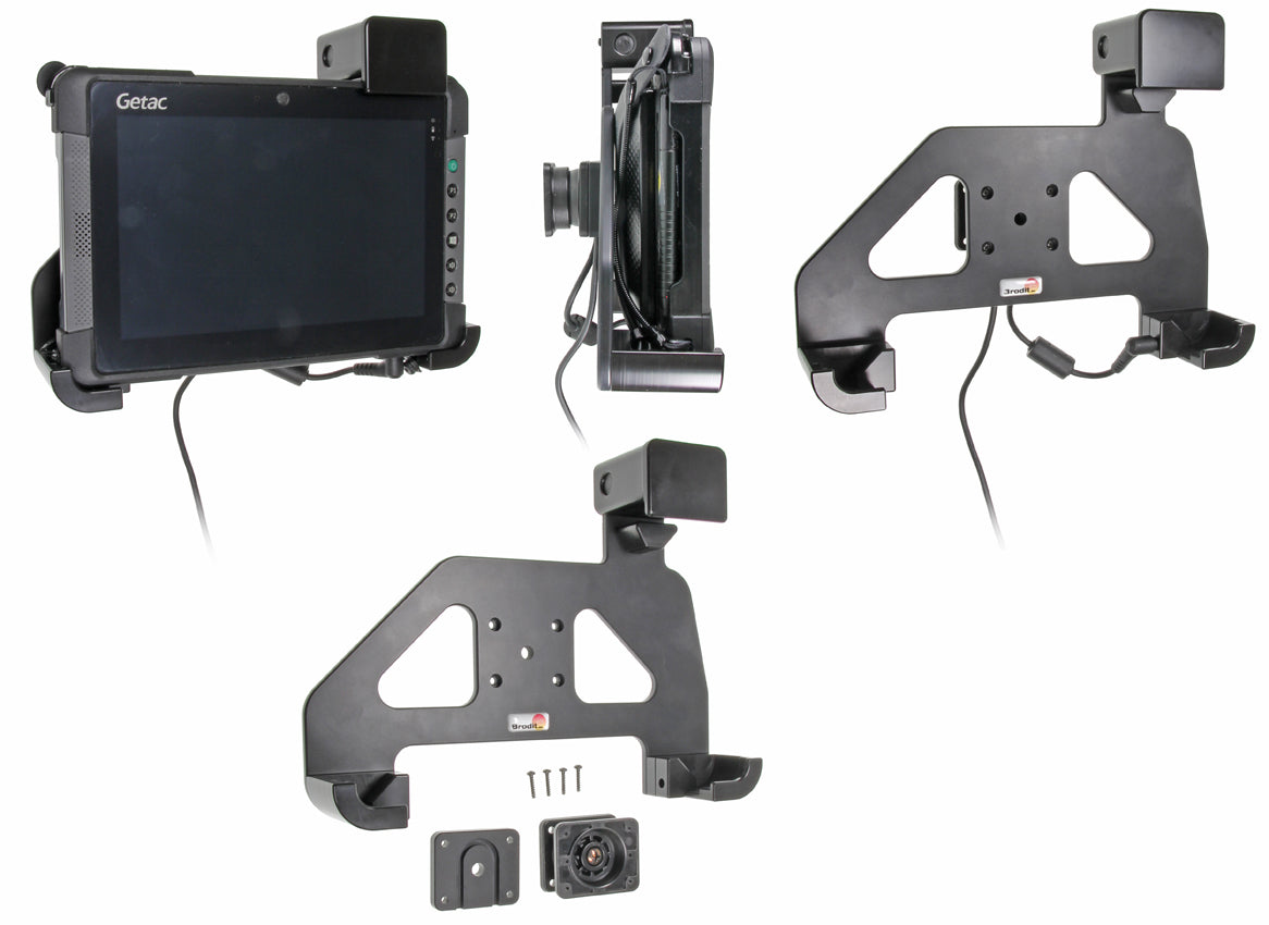 A tartó extra erős műanyagból készül, zárral van ellátva. Csuklóval van felszerelve, így állíthatósága miatt elkerülhetjük a fényvisszaverődést. Könnyedén válthat a vízszintes és függőleges pozíciók között. A tartóra csatlakoztathat egy eredeti Getac szivargyújtó kábelt. (P/N: 441830700002 R00).