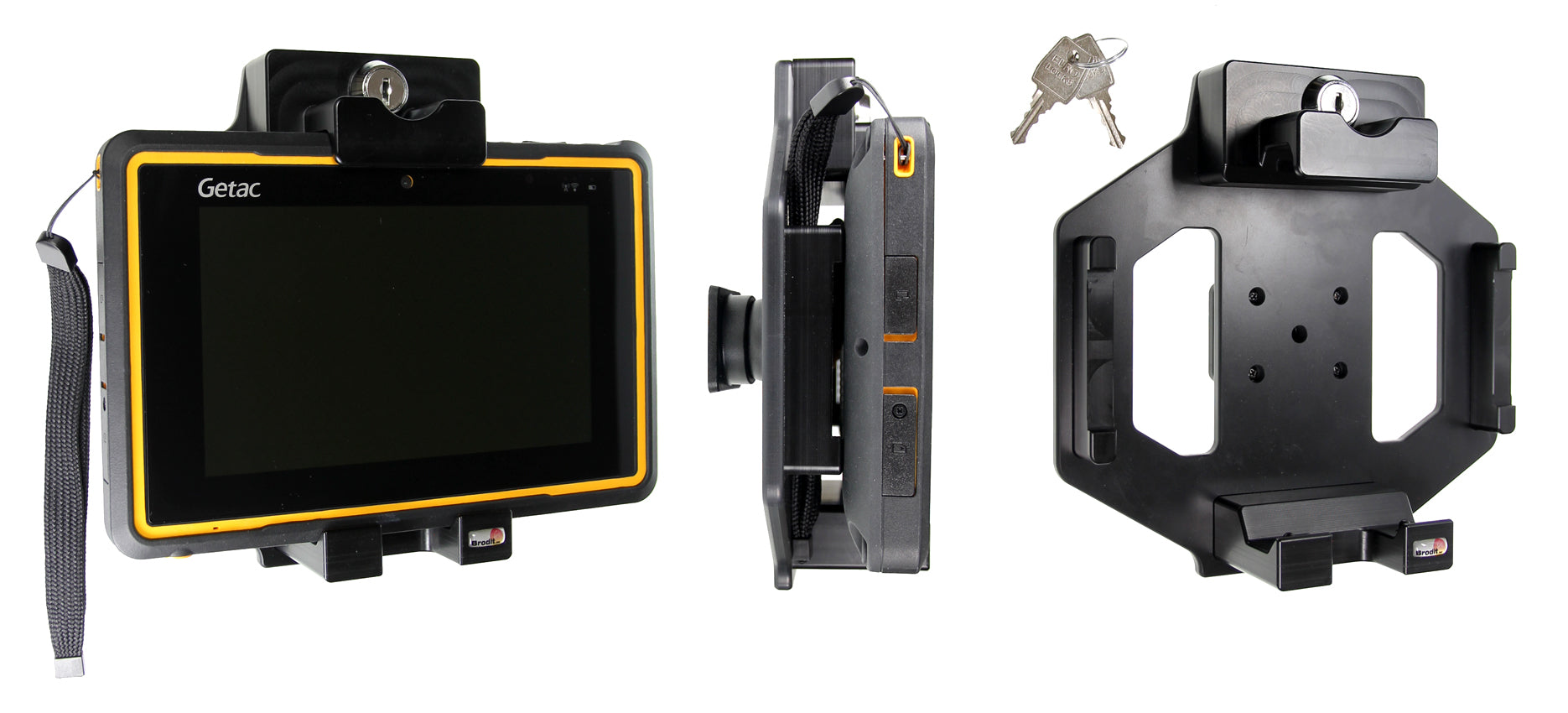 A tartó tökéletesen használható kiállításokon vagy üzletekben, vagy bárhol, ahol az a cél, hogy könnyen hozzáférhető legyen készüléke, de ne lehessen elmozdítani. A tartó extra erős műanyagból készült és zárral van ellátva. Getac készüléke eltávolításához szüksége van a két mellékelt kulcsra. Szíj nélküli és szíjjal ellátott eszközökre is illeszkedik.