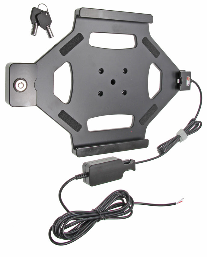Fontos: A töltő egység áramfogyasztása 2A, használjon külső biztosítékot. Beszereléskor a tartó piros vezetékét csatlakoztassa a külső biztosíték által védett áramkör pozitív részéhez, közel az energiaforráshoz. Vezesse a kábelt a tartótól a műszerfalig, és a mellékelt ragasztóval rögzítse a töltőt. Győződjön meg róla, hogy a töltő a műszerfal mögött jól szellőző helyen álljon! Csatlakoztassa a következőképpen: 1. Kösse a fehér vezetéket a negatív föld pólushoz. 2. Kösse a piros vezetéket a 12/24 voltos áramellátáshoz, amelyet a jármű gyújtáskapcsolója szabályoz. A tartó felszerelése: Kérjük, figyelmesen olvassa el a használati utasítást és nézze meg a telepítést segítő képeket, mielőtt a tartót rögzíti! 1. Lazítsa meg a tartó közepén a csavart, így eltávolíthatja a csukló hátsó részét. Helyezze a csukló talp részét a kívánt helyre. Ezután rögzítse a mellékelt csavarokkal. Helyezze a tartót a talp fölé úgy, hogy az illeszkedjen a csuklóval. Csavarozza a tartót a csuklóra. Húzza meg a csavarokat, amíg a tartó szorosan a helyére nem kerül, de ez később még állítható. 2. Óvatosan csúsztassa a készüléket a tartóba. Nyomja a zárat a tartó bal oldalára. Nyomja le a zár gombját. 3. A zár nyitásához használja a mellékelt kulcsokat. A zárat akkor tudja eltávolítani, ha az oldalait elcsúsztatja a tartótól. Ezután óvatosan emelje ki készülékét a tartóból. 4. A tartó a helyére került. A tartó elfordításával könnyedén válthat vízszintes és függőleges pozíciók között. |